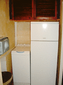 un cellier avec machine à laver le linge et un réfregirateur congélateur |
